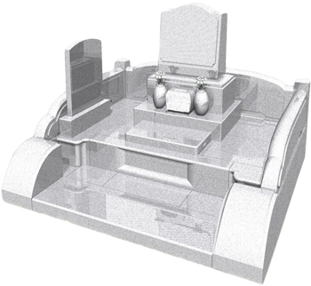 デザイン『白山』、このデザインは洋型タイプの石塔と流線型の美しいデザインの外柵を組み合わせたお墓です。